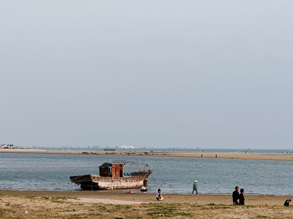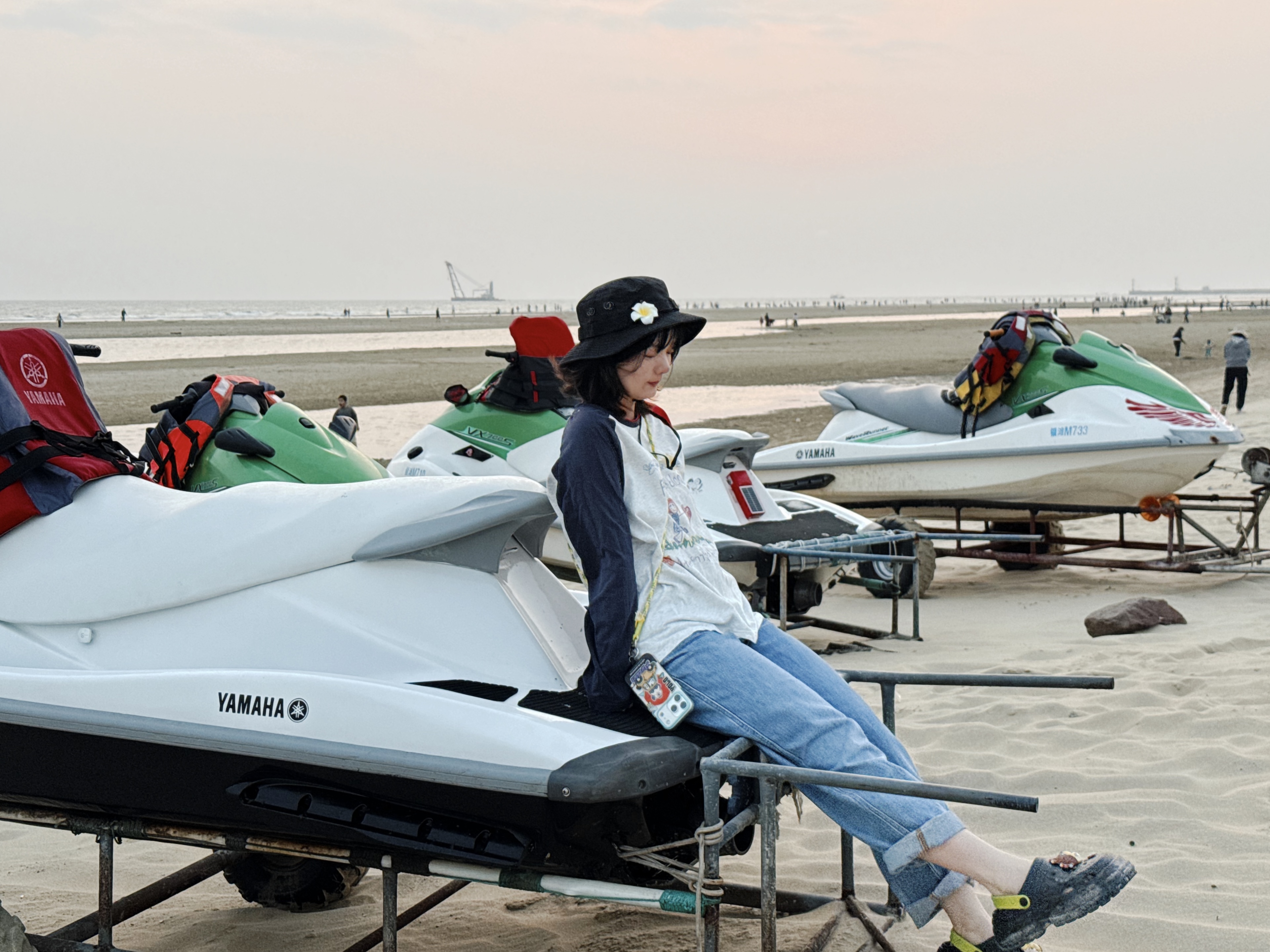 我们先骑去了北海银滩,但看起来附近的电瓶车管理比较严格,停车要花钱,时间也不早了,于是我们立刻掉头前往西边追赶一下日落。一路沿着海骑行,到了侨港镇西南边的电建村,这里的海滩电瓶车可以直接骑到沙子上,非常原始美丽。