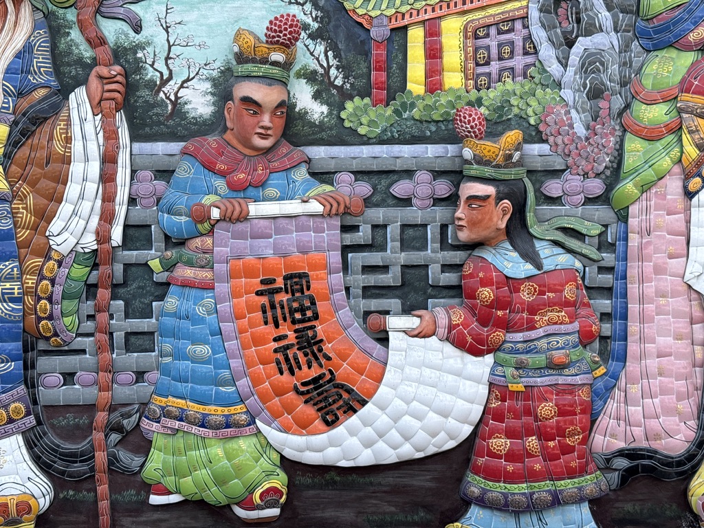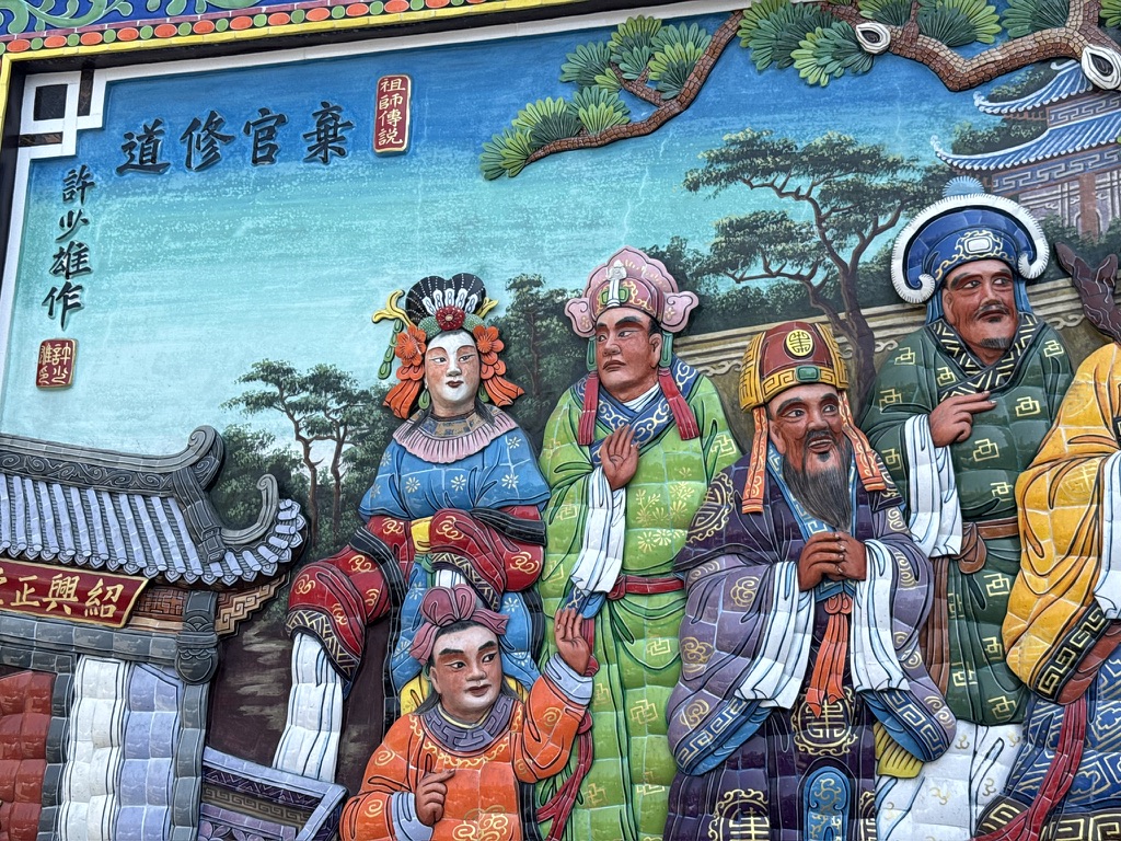 吃饱喝足,继续骑上我们的电瓶车,开始逛汕头。今天还是骑到小公园这边有一个观音庙,这里有一种独特的艺术形式嵌瓷。