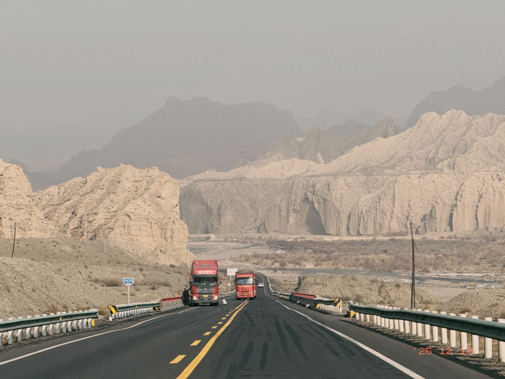 从库车出发的位置,路两边全是加气站,加油站反而少的可怜。CNG 和 LNG 的大卡车在西部是绝对的主流,电力其次,最后才是柴油,传统柴油大卡车在西部如此少见,令人吃惊。
