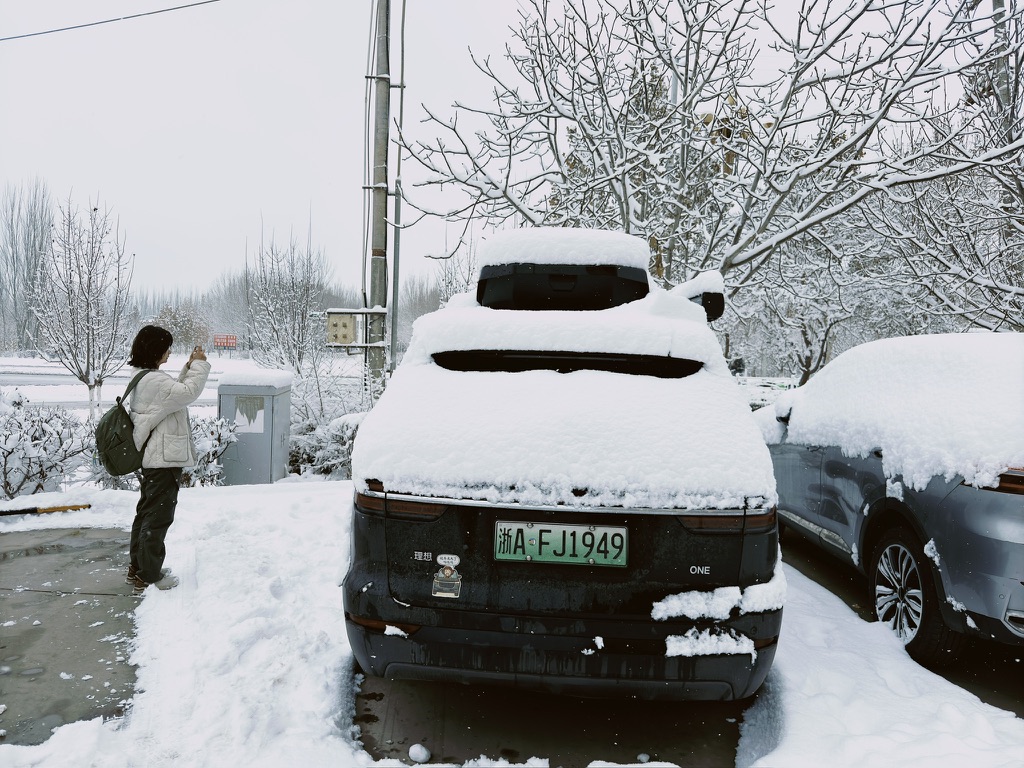 当晚九点,窗外忽然下起了大雪,这时莎车 2025 年的初雪,据说是人工增雪,所以下得特别大。