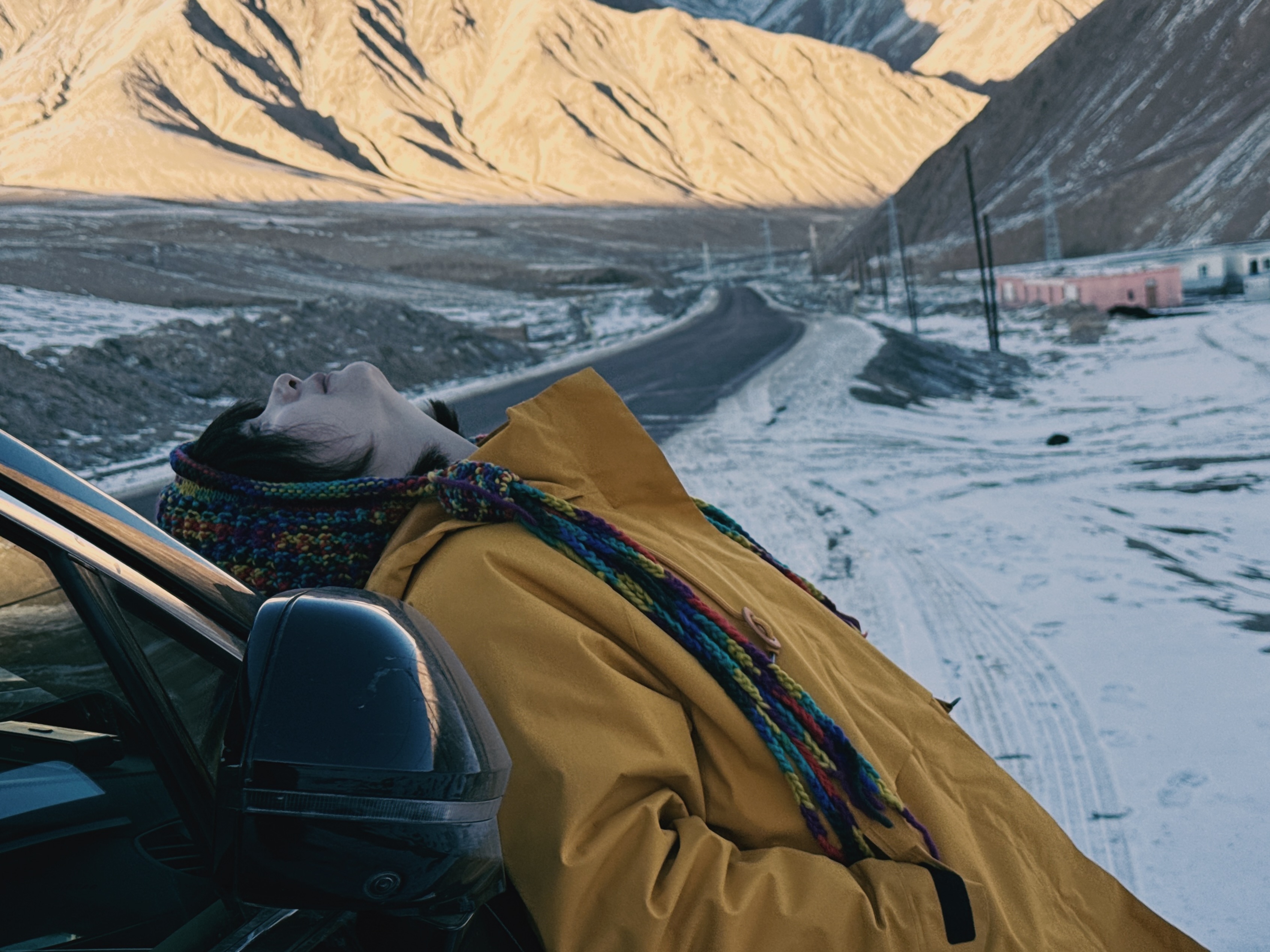 叶城出发前往西藏,不巧前几天是莎车、叶城这边的 2025 年初雪,道路上到处都是雪。一路上的车都龟速行驶。我尽可能地在可控范围内超越龟速车辆,不至于让今天到不了目的地。