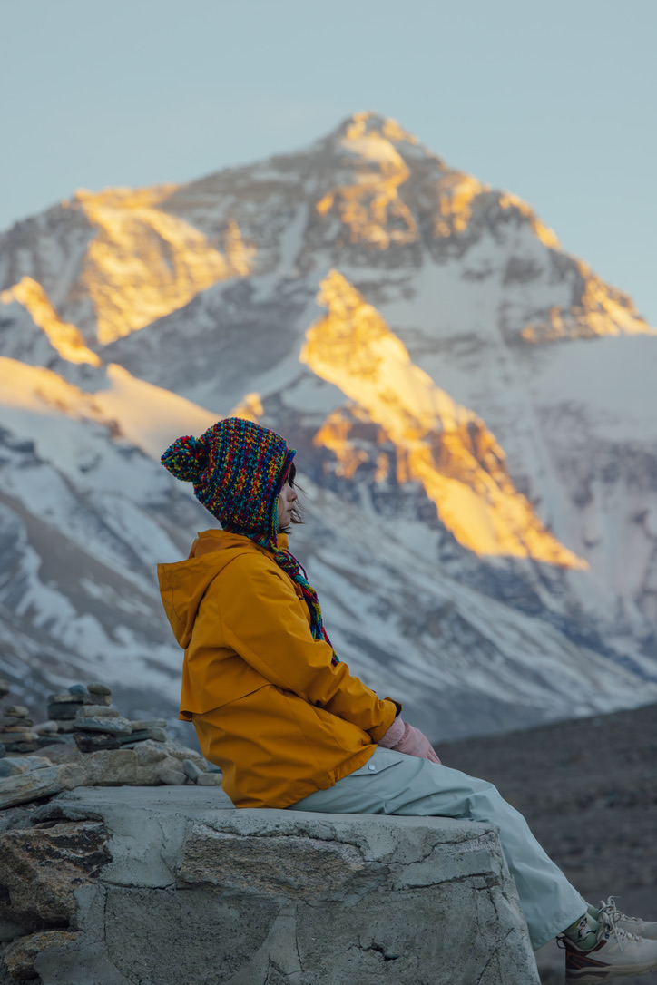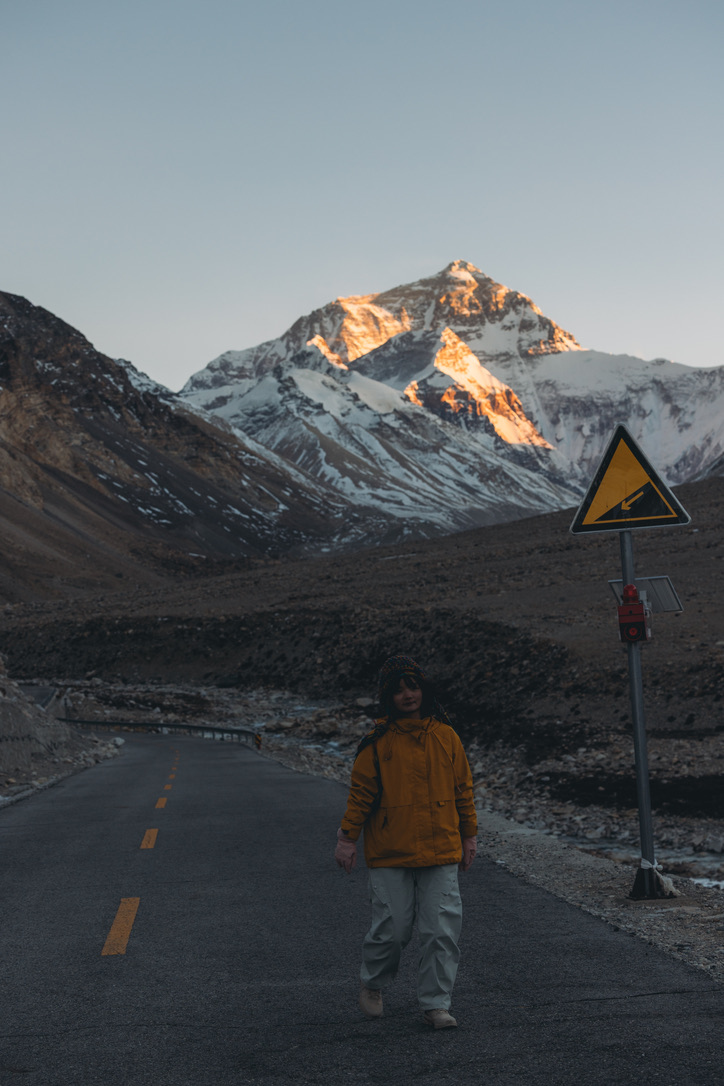 在延时摄影录制的同时,我给恙儿拍了一些和珠峰的照片: