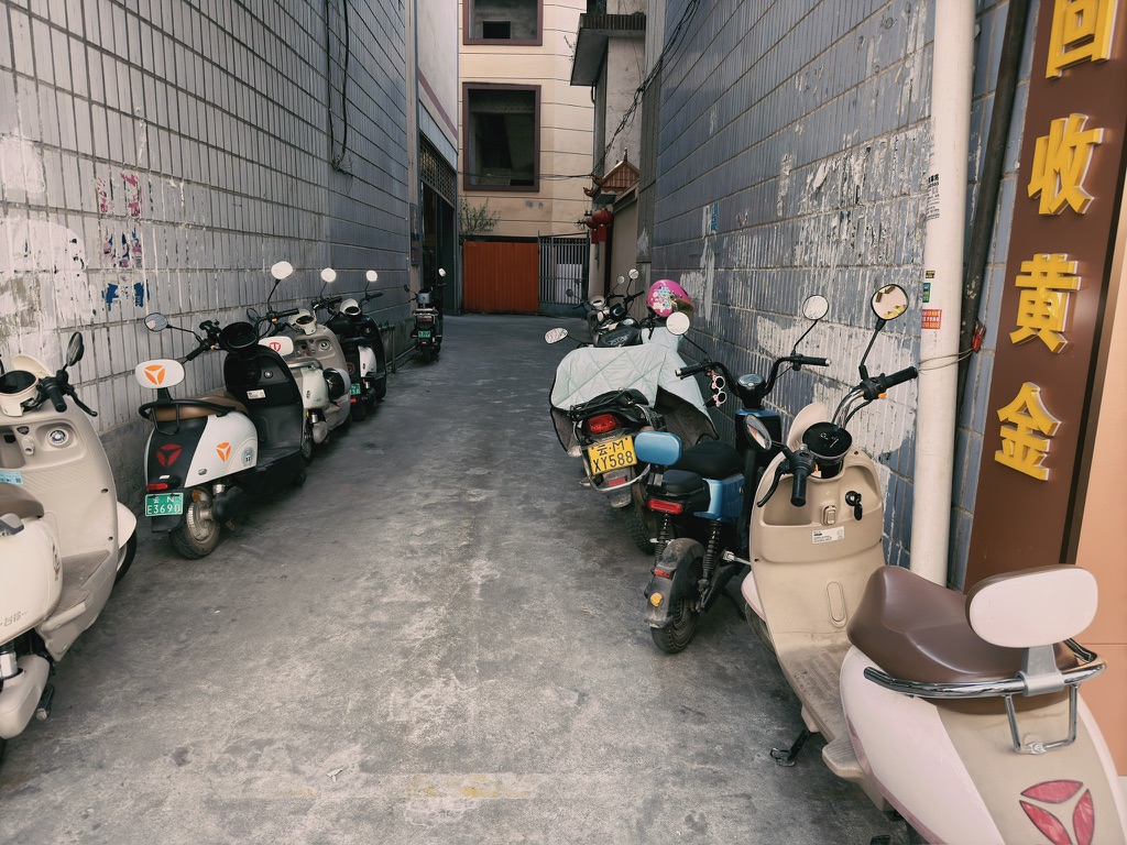 右下角是我们的电瓶车,很显然,我们起到了不好的带头作用,我们把车停在这里的时候,只有我们这一辆,等我们逛完了市场走的时候,这条路已经被电瓶车堵满了。