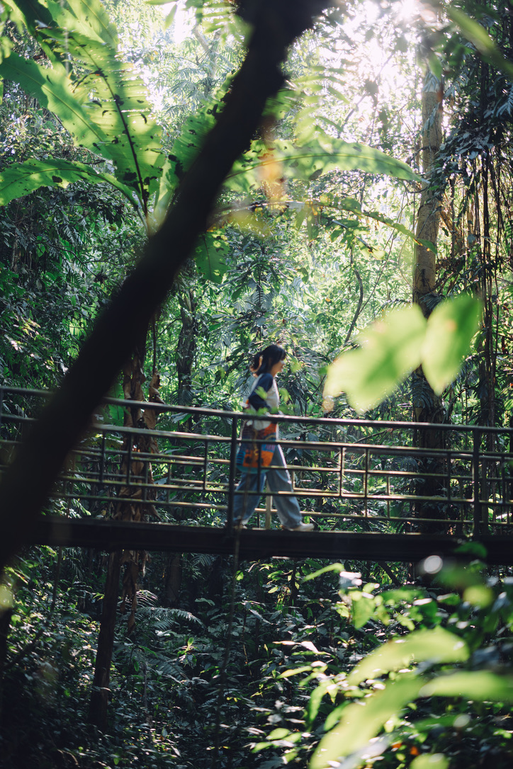 西区逛的差不多了,按理说去东区最好是坐景交车,到第一个景点热带雨林区大概还有一两公里。而去绿石林则需要四五公里,看网上的评价,说绿石林去不去无所谓,没有多好看,远不如热带雨林。恙比较担心我能不能走下来,我说和你在一起就可以走完。于是我们迈开脚步,走!