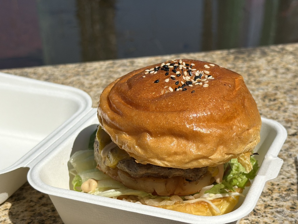 翠湖边有个规模超级小的集市,我们在这里略微一逛,买了一个热带凤梨牛肉汉堡(32 元)。