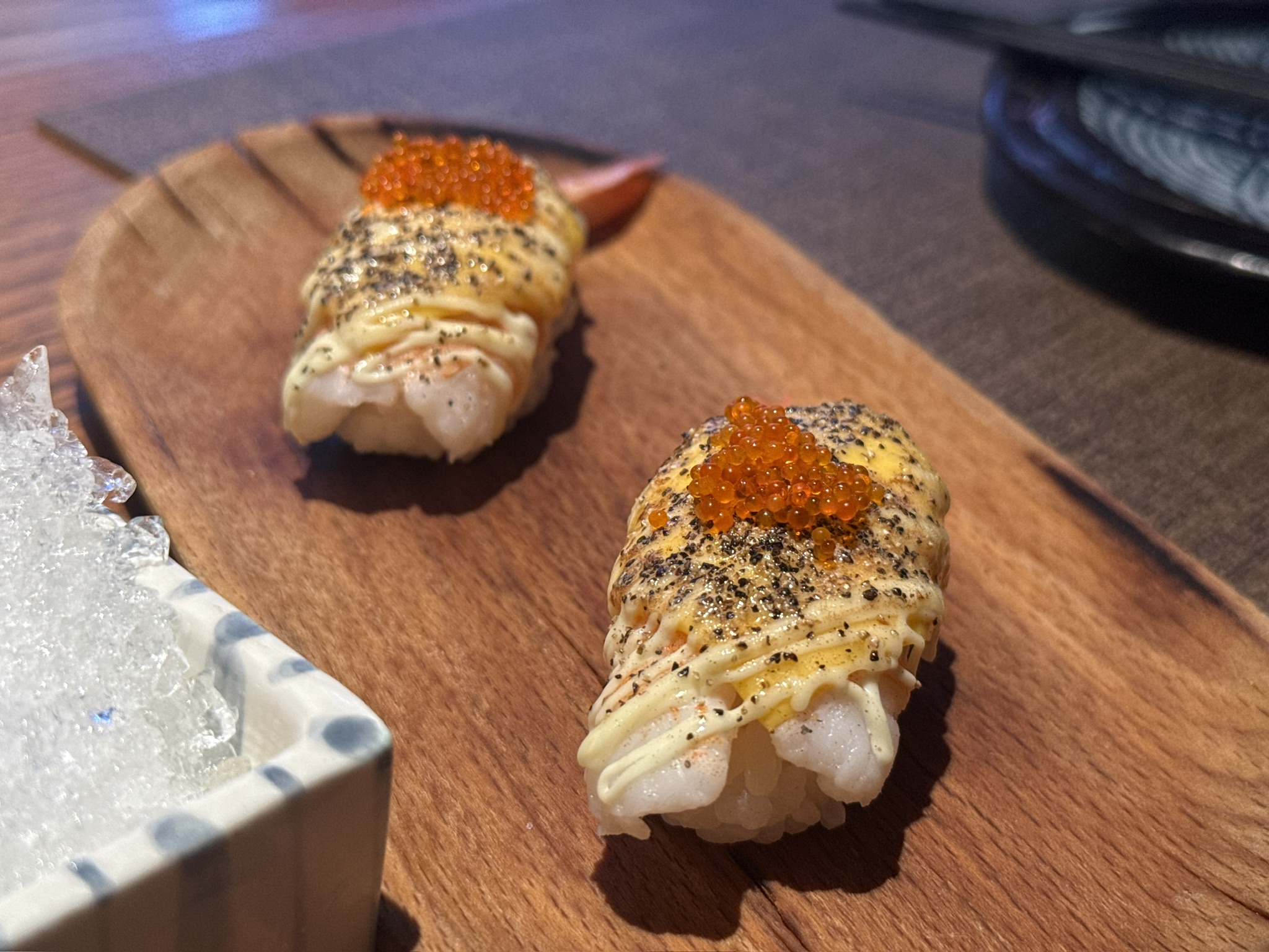 因为盯着手机里的倒计时,我们在戏作寿司下午五点开业前就来到了店门口,成为店里的第二对客人。随后有非常多的客人卡点到来,店门一开一拥而入,立刻就没有空位了。我们早就买好了套餐,直接用美团选套餐下单,成为了最先下单的顾客。