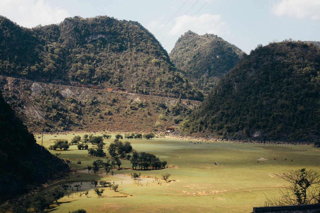 从云南进入百色的时候,那种典型的桂林山水一样的喀斯特地貌就开始出现了。行驶在广西的高速公路上,山清水秀四个字不断的撞到我的脑子里,那种拉着水牛耕田的所谓世外桃源,恐怕只有配合这样的地貌才有说服力。而在一个小时后,我们将看到最接近世外桃源的景象。
