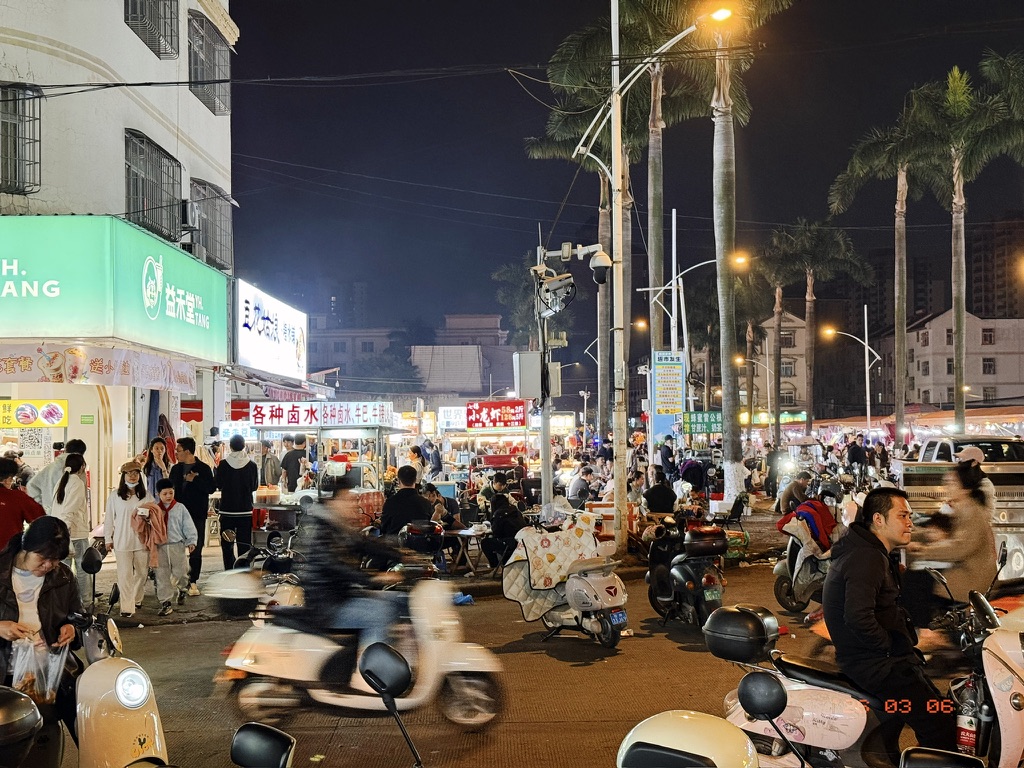 骑电瓶车去鸿发夜市的路上,就听到路边有两个小贩儿在争相报价砂糖桔,其中一个已经报到了1元以内。但我们忘记他们是在哪个路口了,逛完鸿发夜市往回走的时候,恙儿在路边买了一份很便宜的草莓,和一袋子很便宜的砂糖橘。结果绕着环岛转了一圈,才发现那个自杀式报价的砂糖桔竟然就在我们酒店门口。而他的报价是5毛 8一斤。