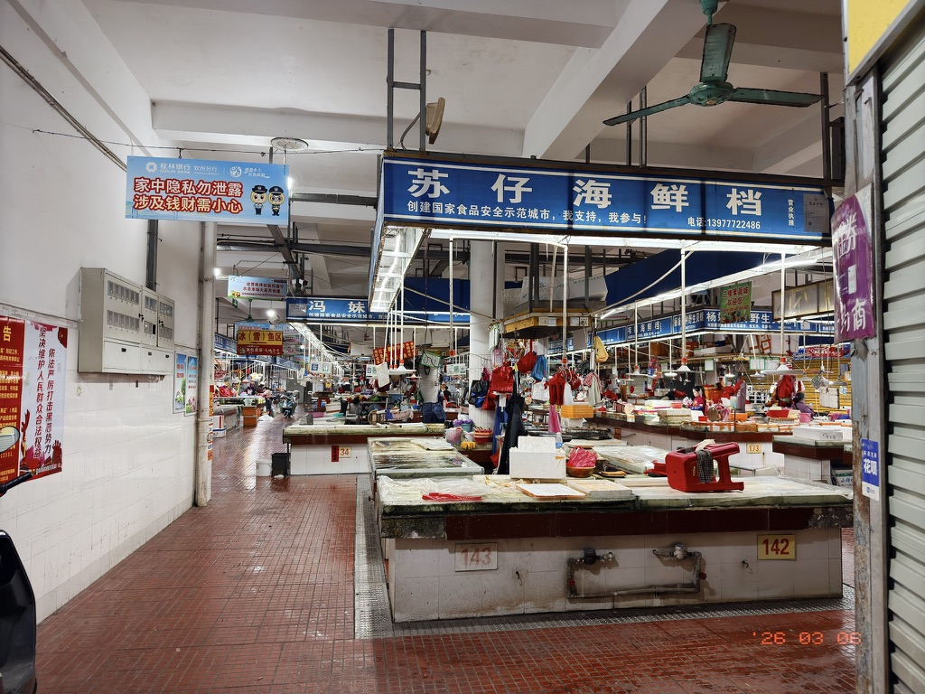 钦州还挺好逛的,也很好吃,但因为已经决定了在4月份结束旅行,我们不知不觉地加快了脚步,只在钦州呆了一夜。第二天早上离开之前,恙儿带我去寻觅回春丹乐队主唱刘西蒙推荐的桂林担子米粉。把车停在一个原先是加油站后来改建为大超市的充电站里充电。