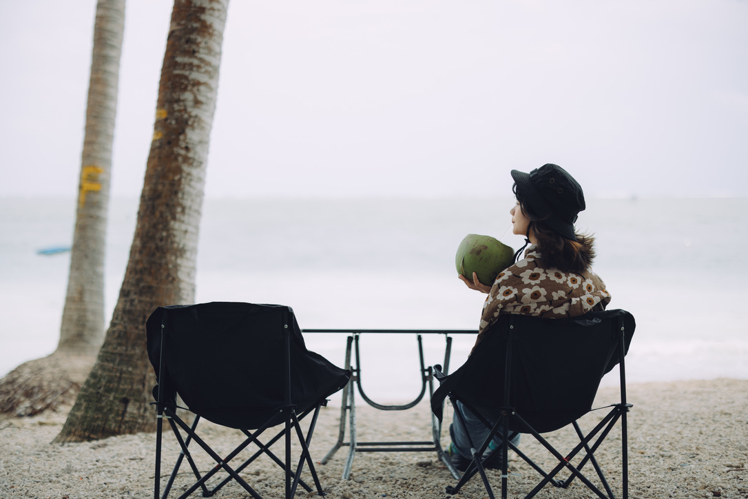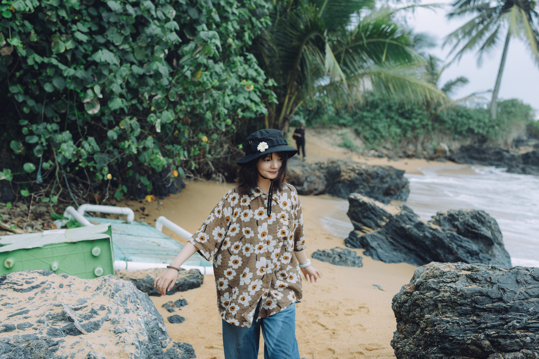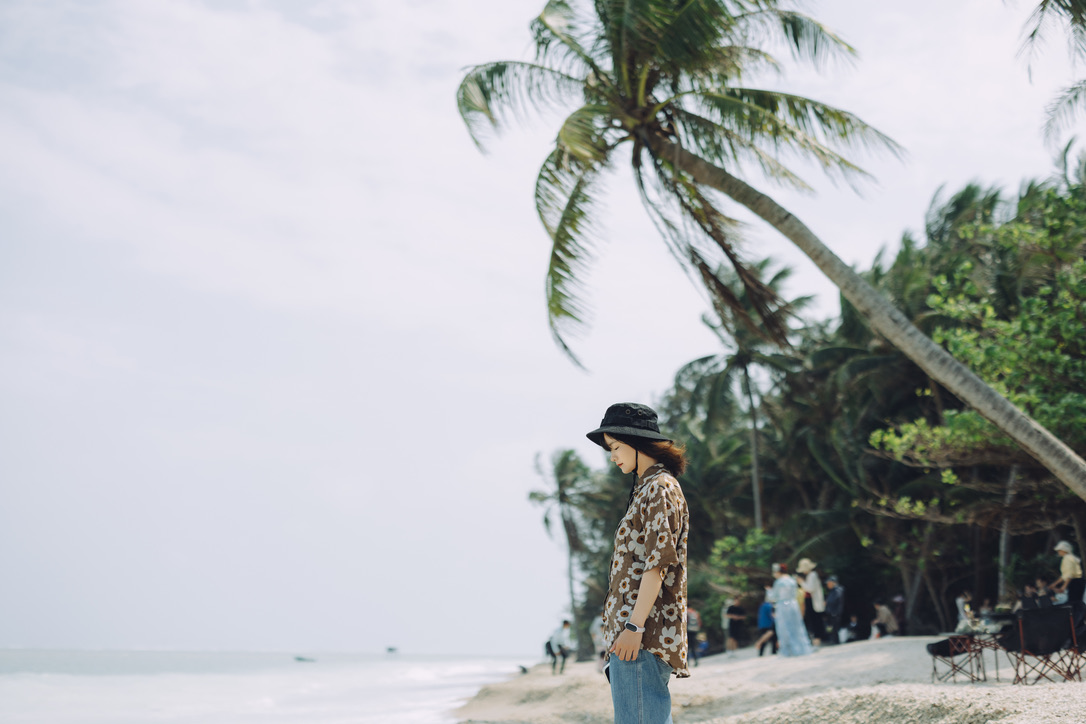 海边有一个老奶奶出售青椰,只要买了她的椰子,就可以坐在户外小椅子上舒服地看海喝椰子汁儿。青椰10块钱一个,我们买了一个。有点出乎意料的是,喝完椰子汁,还可以请奶奶把椰子劈开,挖出里边的椰肉。显然这道程序在这里是标准作业,奶奶拿着专业的工具,三下五除二的就把里边的椰肉取了出来。这新鲜的椰肉吃起来可真嫩啊,比我们在内地吃到的椰子鸡里的椰肉要嫩得多得多得多。