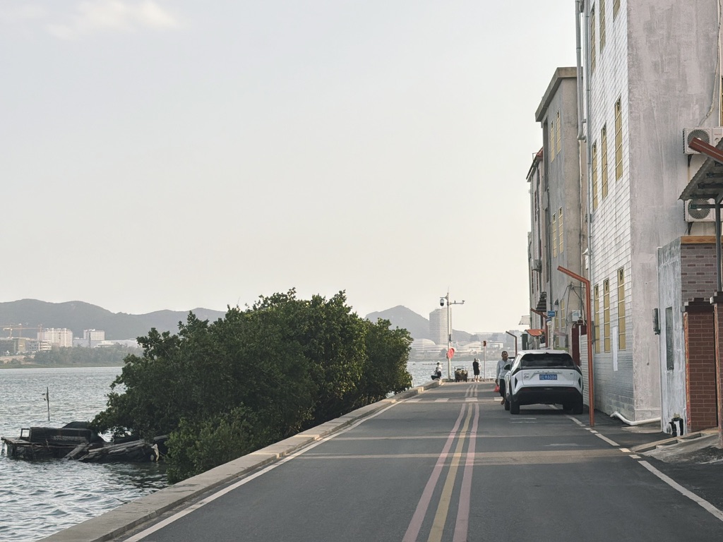 这里只有一条极窄的公路,紧紧地靠着海,而公路的另一边就是村民的房屋。地图上看到的那所桐海小学的大门就正冲着大海。