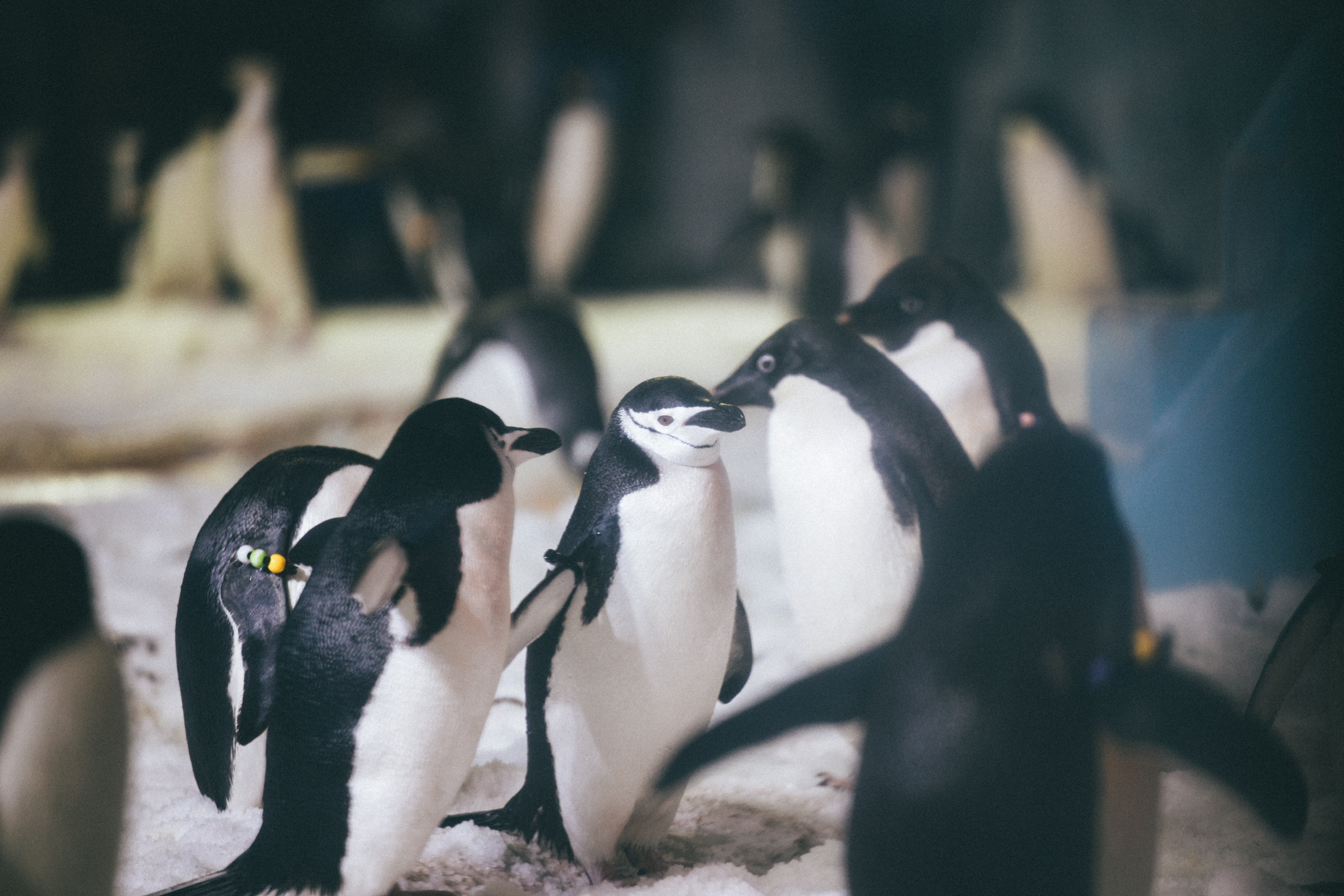 长隆的企鹅馆弄得相当不错,每一只小企鹅都有一个独立的身份号,就是绑在翅膀上的三个小珠子,不同颜色代表了不同数字。